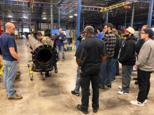 On October 24 and 26, 2023, students from Kansas City Kansas Community College (KCKCC) toured the U.S. Engineering Metalworks (USEMX) fabrication and manufacturing facility in Lawrence, Kansas. The students, enrolled in Welding Technology and Heating & Refrigeration programs at KCKCC, participate in a hands-on learning environment at the college, honing their skills on systems and applying their knowledge to practical unit models.