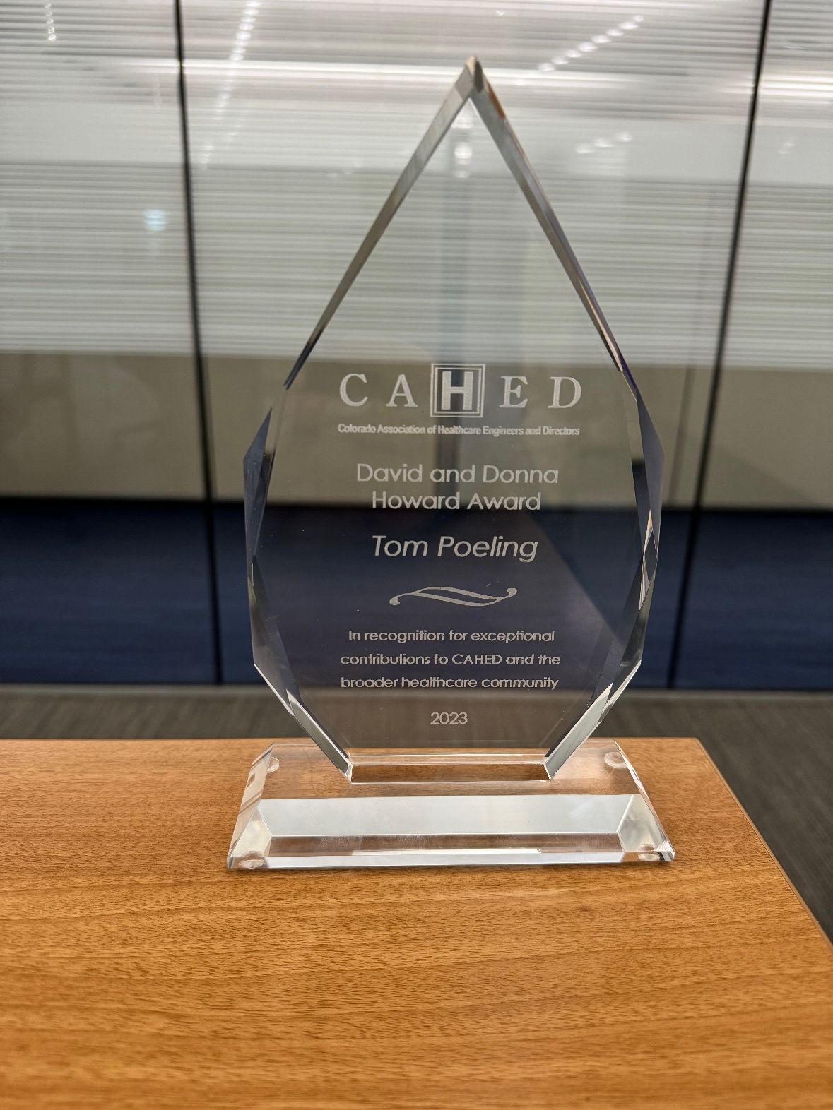 Congratulations to Tom Poeling, Director of Energy and Sustainability, for receiving the 2024 David and Donna Howard Award from the Colorado Association of Healthcare Engineers and Directors (CAHED). This award recognizes Tom’s contributions to the organization and the broader healthcare community, particularly his efforts to drive sustainability.